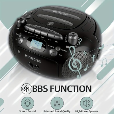 Portable CD/cassette Boombox with MP3 player, USB recording and playback, AM/FM radio USB-/、 Dual speaker, bass retro stereo sound system